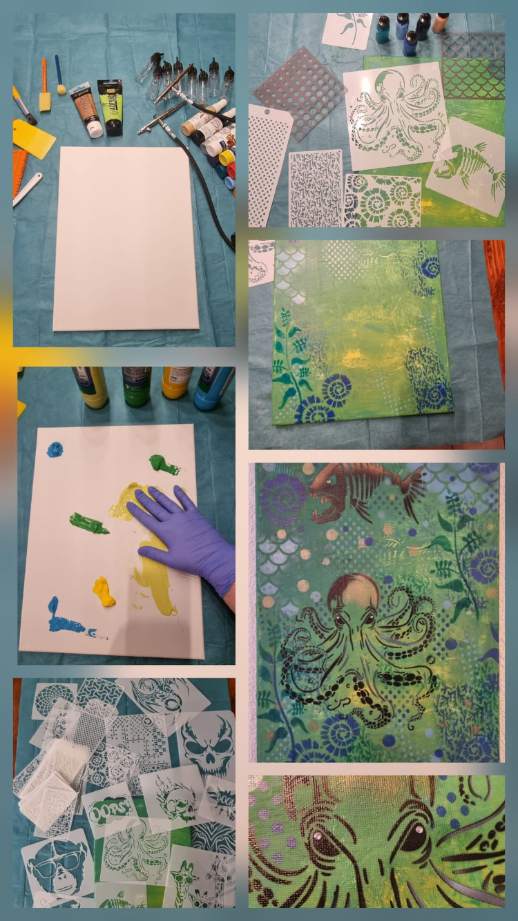 Mit Airbrush und Schablonentechnik kannst du dir ein cooles Bild 30x40 cm auf Leinwand gestalten.
